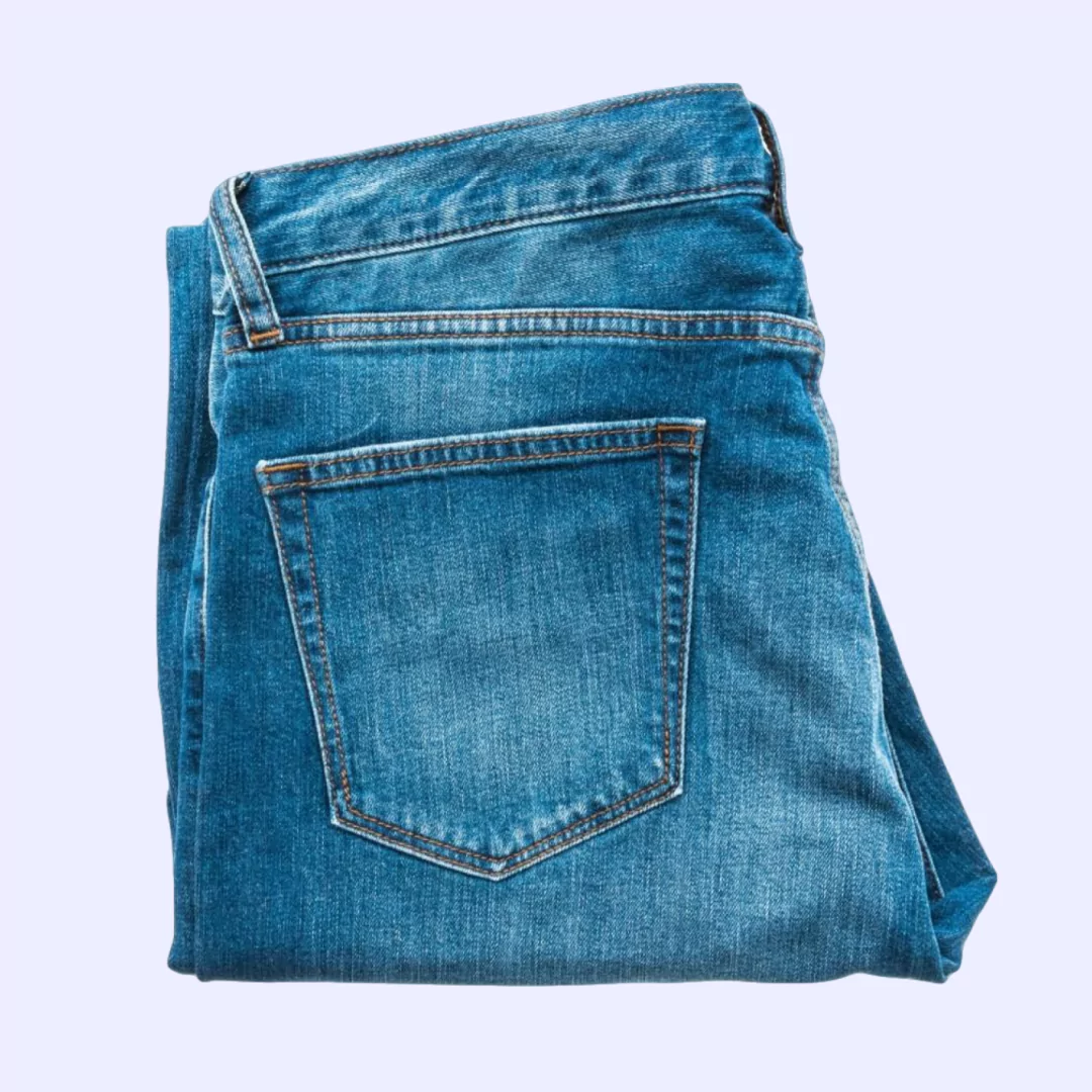 Generous classic fit that sits at waist, roomy through seat and thigh, with a straight leg; zip fly with button closure, side pockets, and button pockets at the back